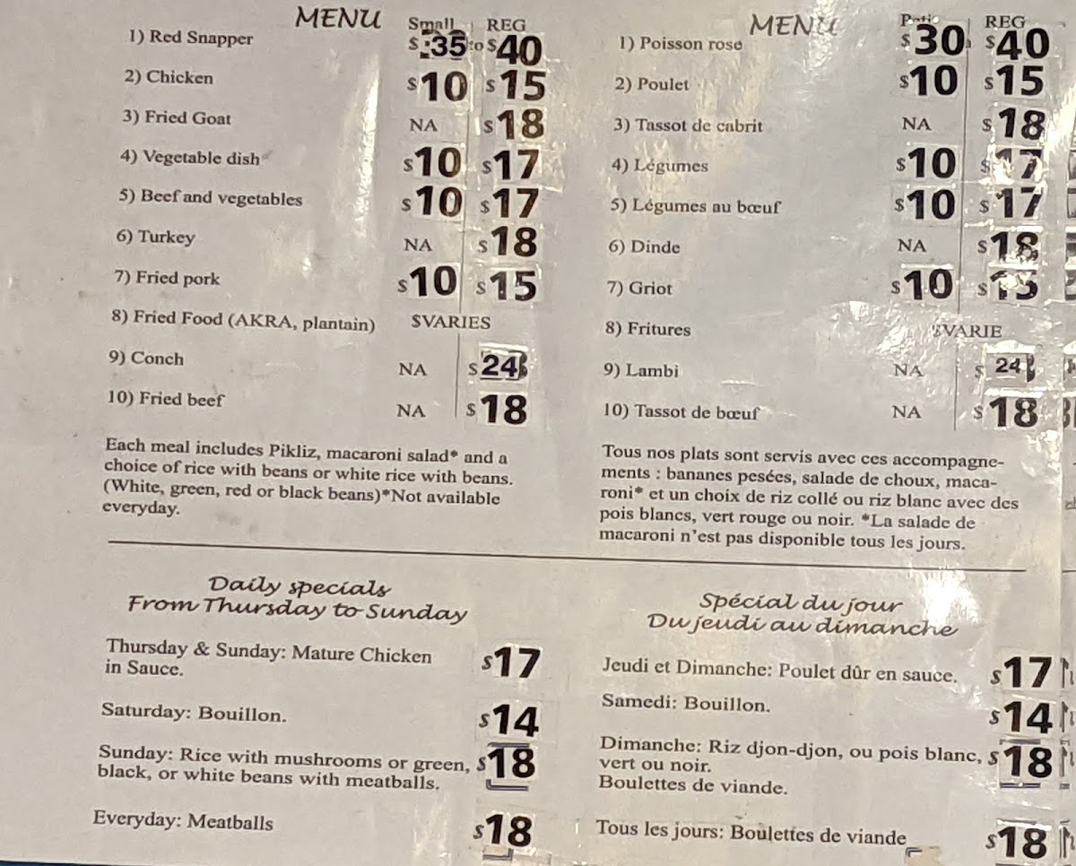What adds extra depth to the menu is the thoughtful variation by day. On Saturdays, Bouillon brings a comforting, soup-based option that feels perfect for a relaxed weekend meal, while Sundays feature Mature Chicken In Sauce, a dish that signals richness, patience, and bold flavor-ideal for a traditional Sunday gathering. For those visiting on any day of the week, Meatballs remain a reliable everyday choice, reinforcing the restaurant’s commitment to consistency.