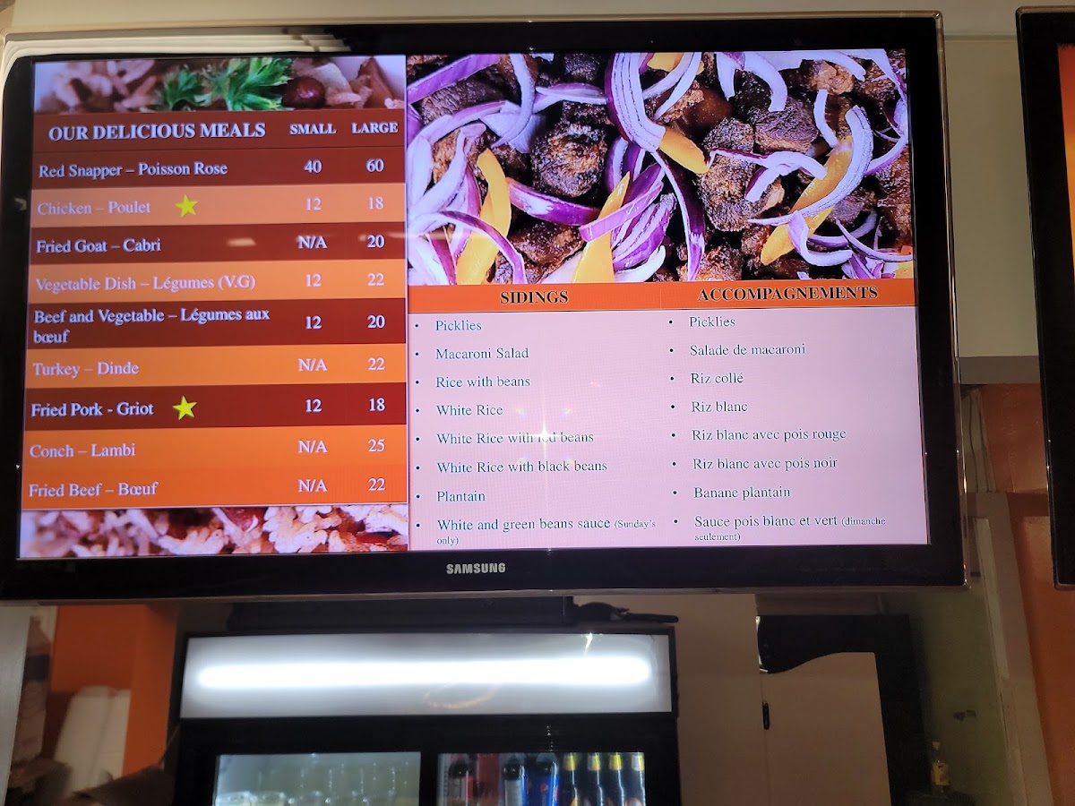 The item menu further broadens the experience with choices like Red Snapper, Chicken, Fried Goat, Vegetable Dish, and Beef And Vegetables, allowing diners to move between seafood, poultry, and red meat with ease. These options suggest flexibility, catering to different tastes while maintaining a cohesive culinary identity. The “Others” section, featuring Poisson Rose, Poulet, and Griot, adds a final layer of cultural character, hinting at classic preparations that many Caribbean food lovers seek out specifically.